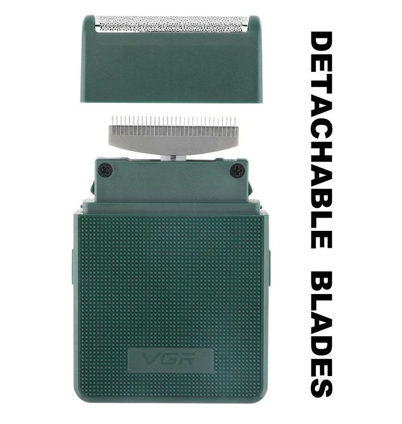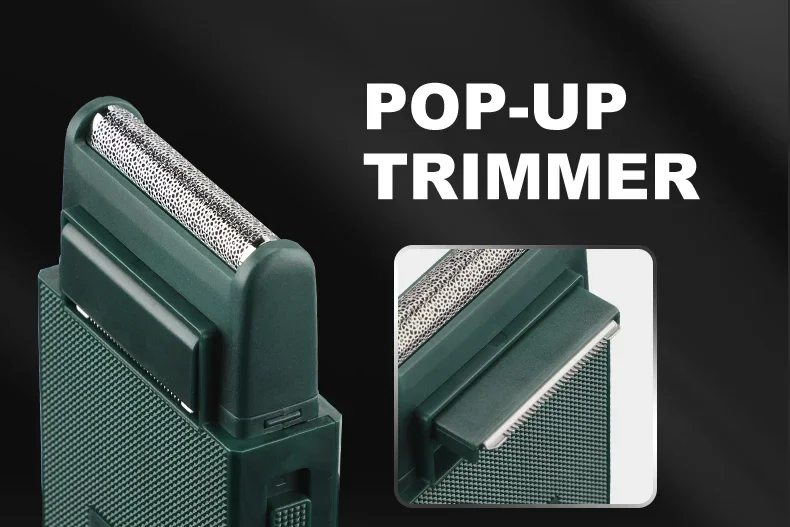 Versatilidade, o barbeador VGR possui um aparador pop-up conveniente. Este prático acessório permite aparar facilmente costeletas, bigode ou decote, proporcionando uma experiência de cuidado completa. Com apenas um simples empurrão, o aparador está pronto para uso, tornando rápido e fácil obter uma aparência limpa e polida.