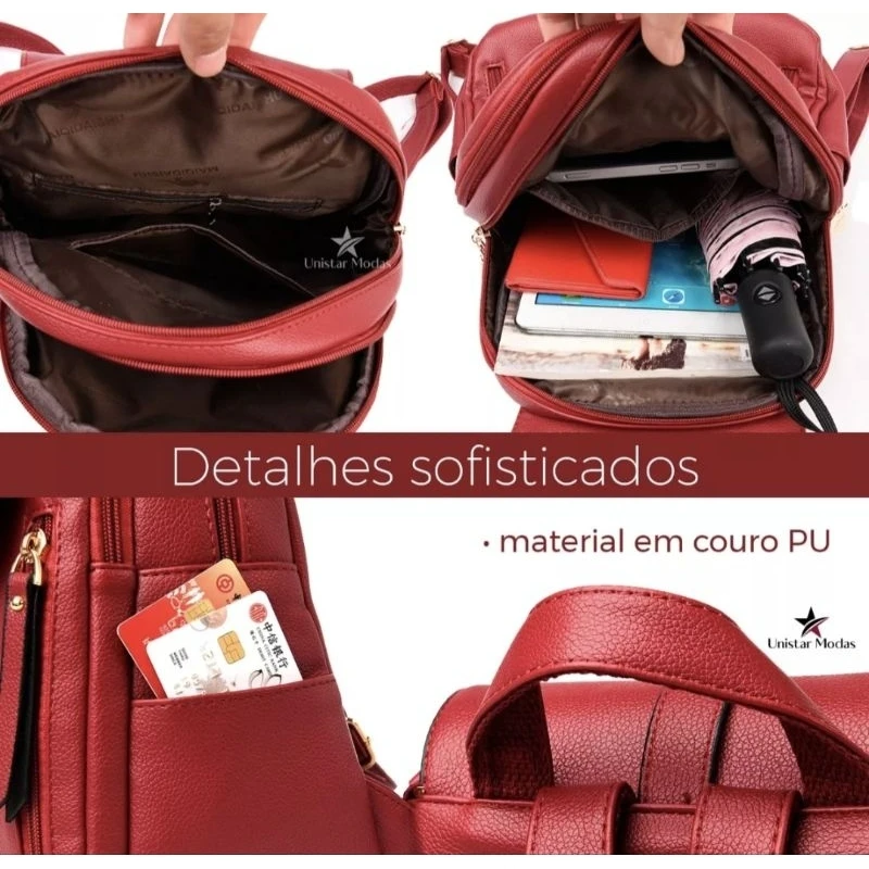 Confeccionada com materiais de alta qualidade, essa bolsa reúne conforto e durabilidade em um só produto. As alças ajustáveis garantem um ajuste perfeito ao seu corpo, enquanto os compartimentos espaçosos permitem que você armazene seus pertences de forma organizada e segura. Seja para o trabalho, viagens ou eventos sociais, a Bolsa Mochila Feminina 3 em 1 é a escolha ideal para mulheres que buscam praticidade sem abrir mão do estilo.