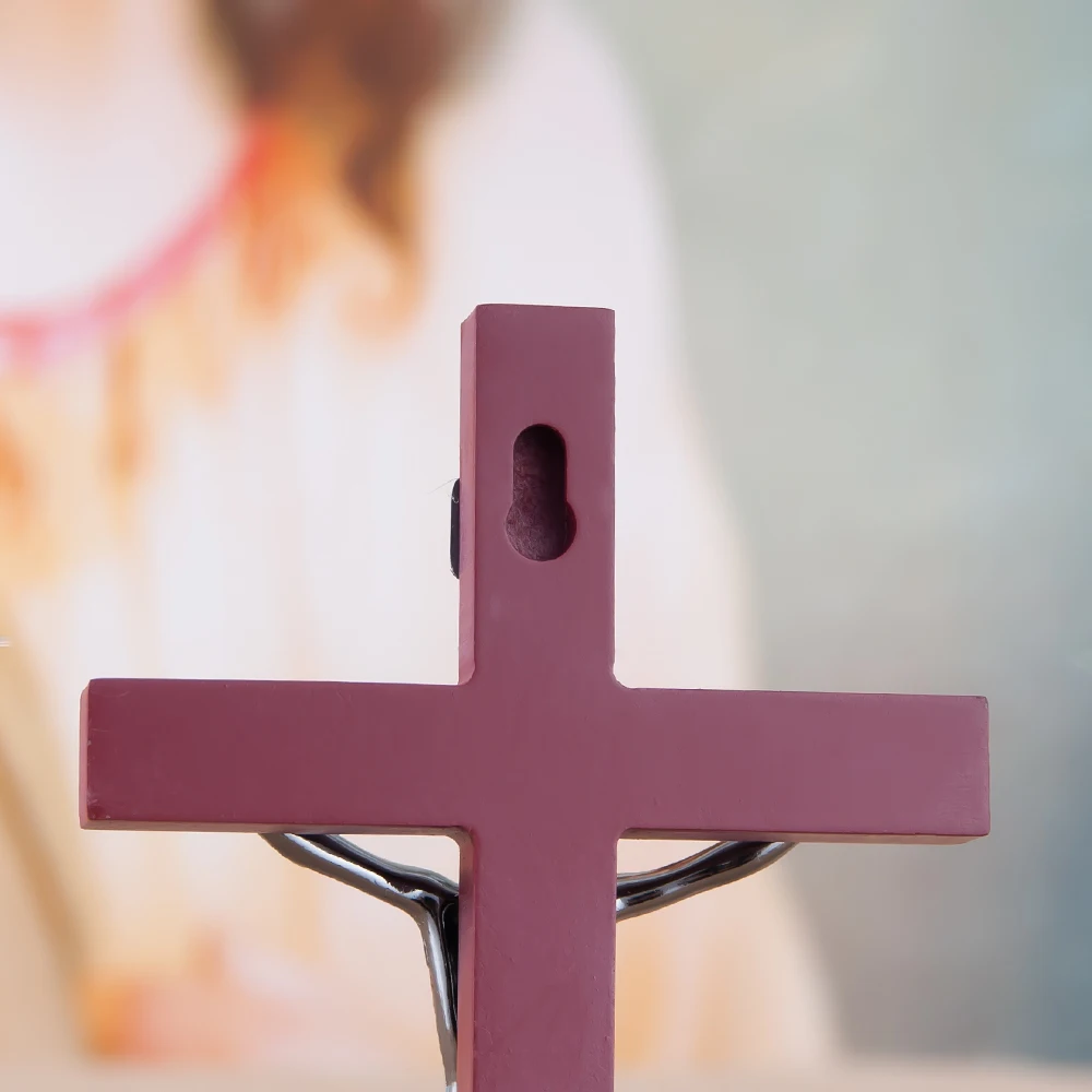 Obs: O crucifixo possui um pequeno orifício na parte superior traseira, o qual permite que você o fixe na parede.