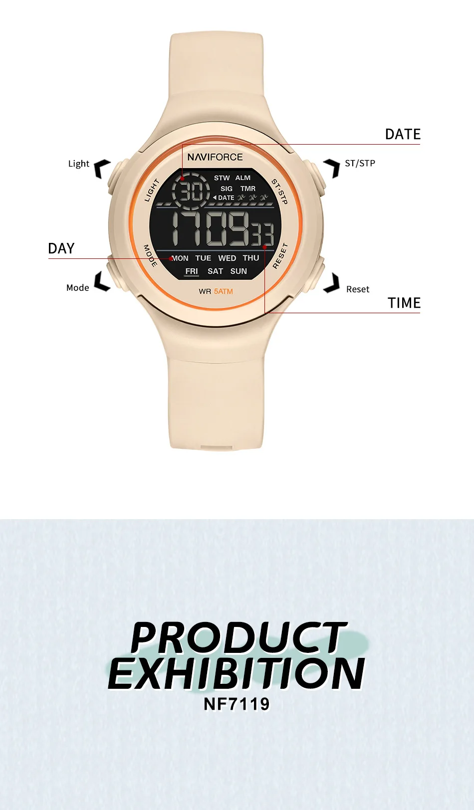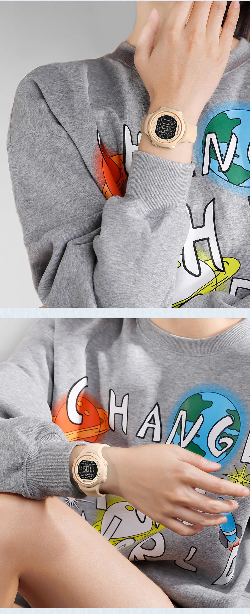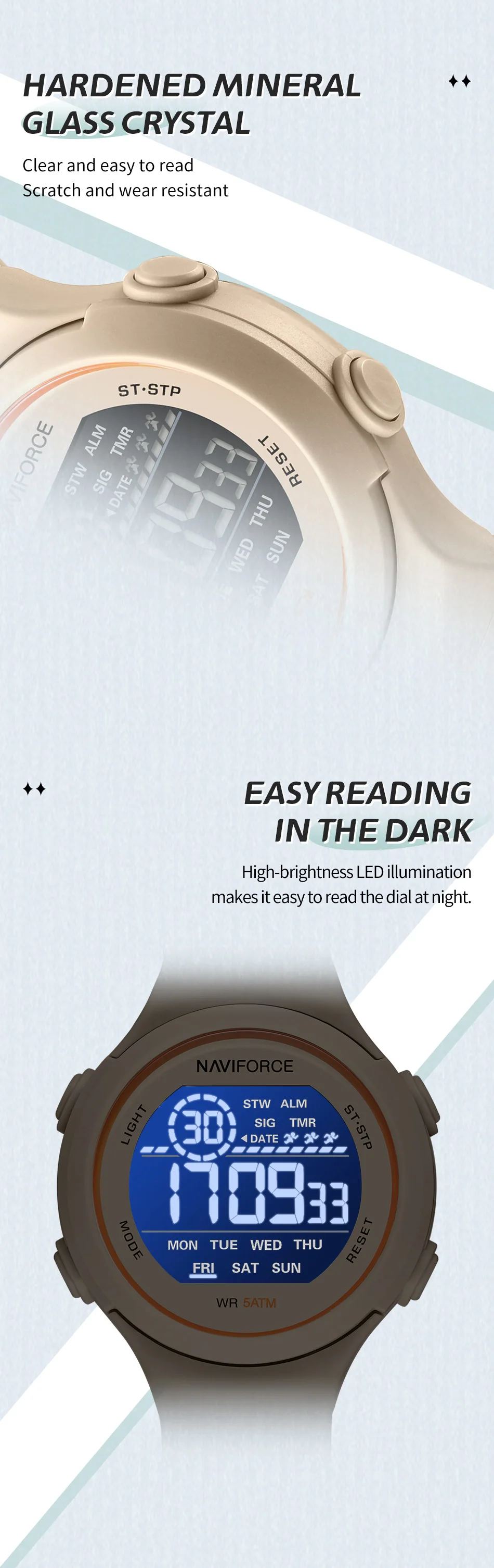 RECURSOS DO RELÓGIO: Mostrador de hora, dia e mês do ano, alarme, cronômetro.